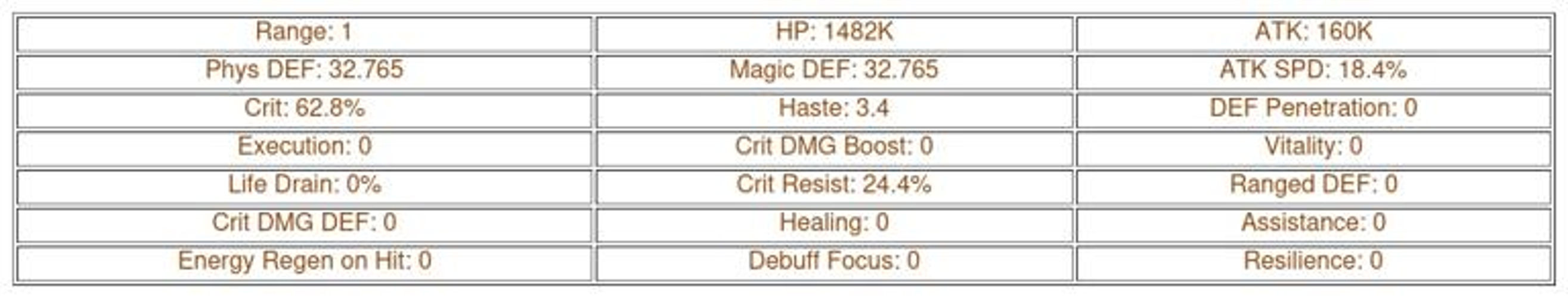 • Hero Focus: Boosts her critical hit rate during combat, increasing overall damage output.