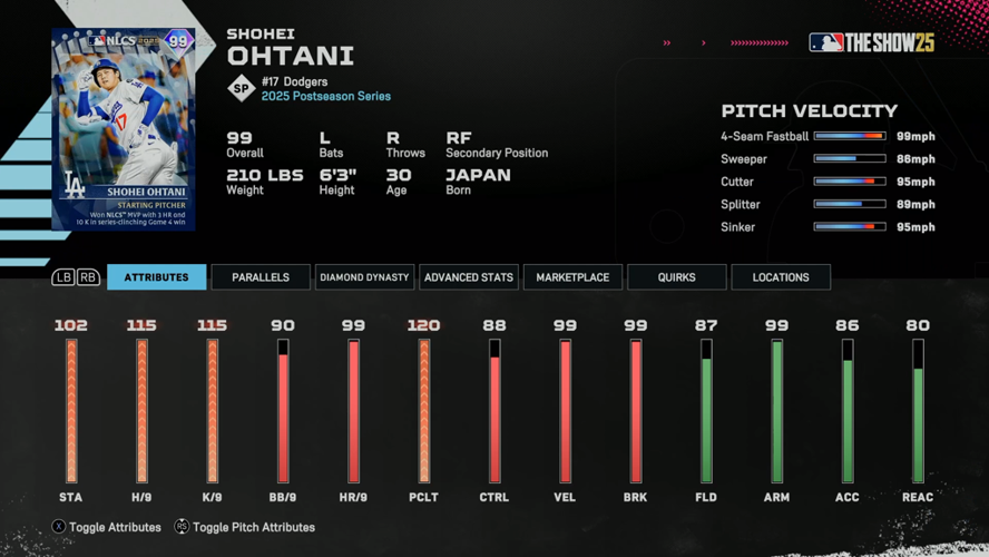 A standout addition is Shohei Ohtani, whose 99 overall card emerges as a game-changer. This card is earned through a remarkable NLCS performance where Ohtani struck out ten Phillies and launched three home runs in Game 4. The card features versatile attributes, making him an elite starting pitcher, yet his hitting stats also position him as a potent DH option, with contact and power ratings suitable for endgame play.