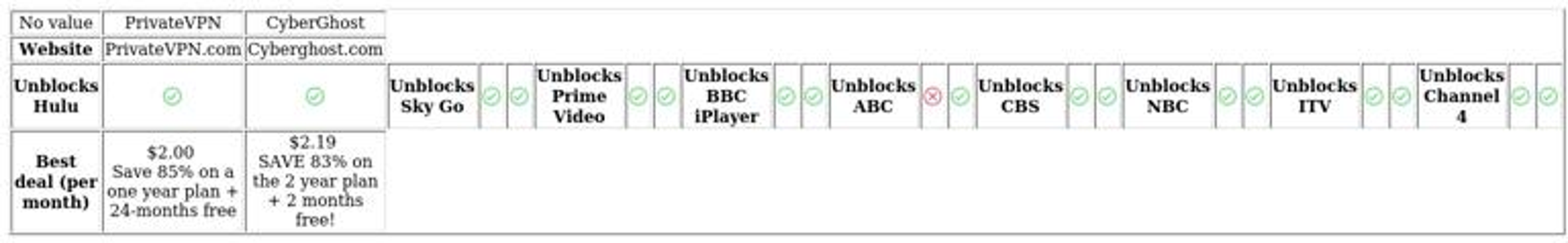 Both PrivateVPN and CyberGhost include servers in major streaming hubs — think the US, UK and Australia — so either will cover most unblocking needs.