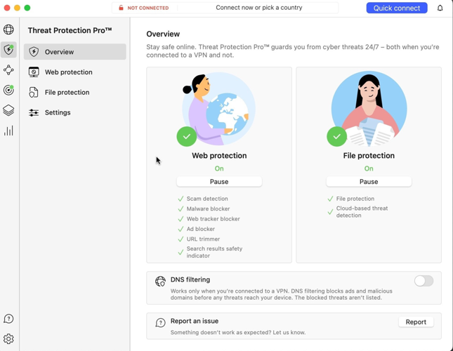 Unlike its counterpart, Threat Protection Pro functions autonomously without requiring VPN connectivity, scanning URLs and JavaScript directly on devices.